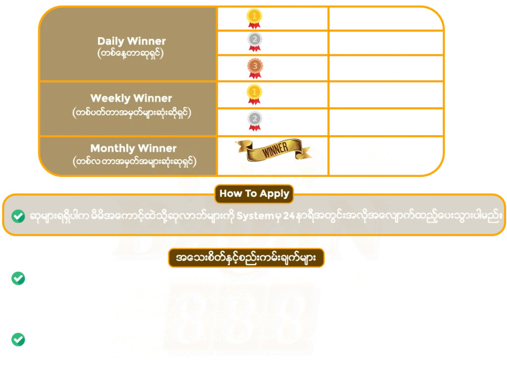 Bagan888 မှာ အမှတ်အများဆုံး Rank တက်နိုင်သူက “Winner” ဖြစ်ပါတယ်။